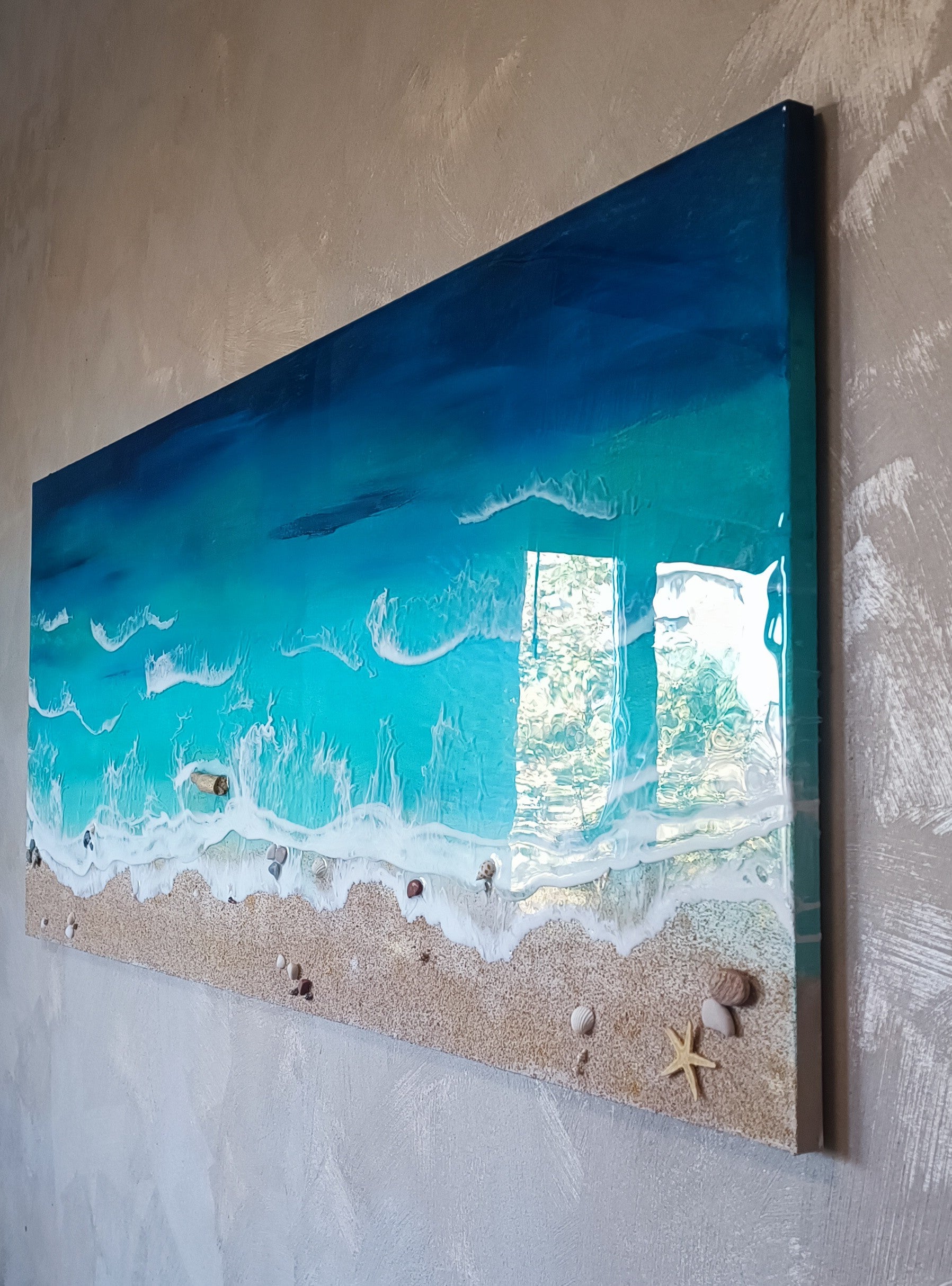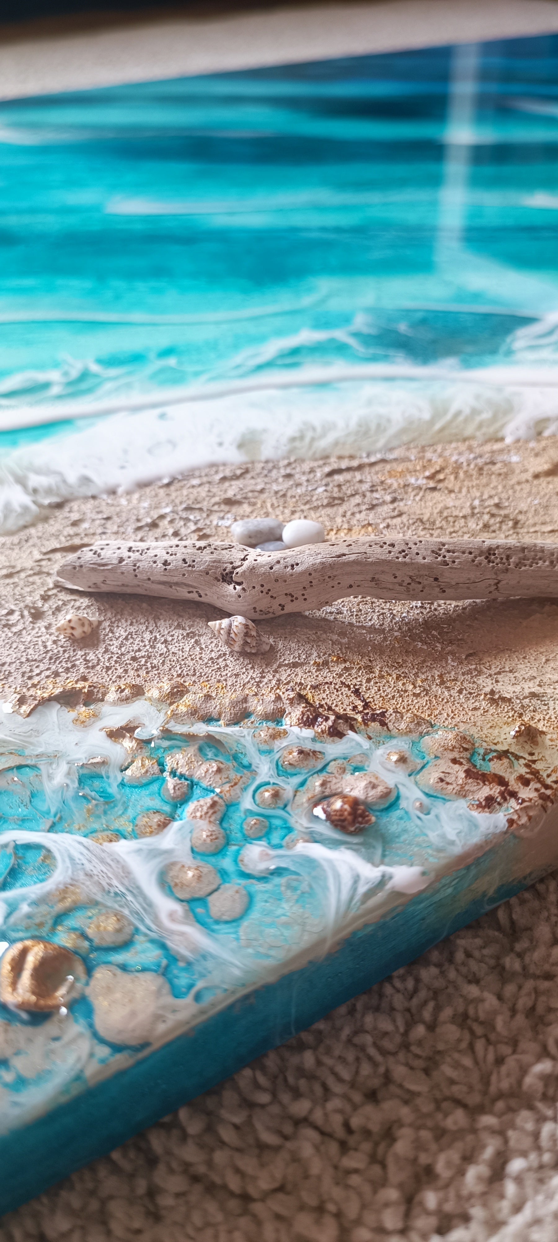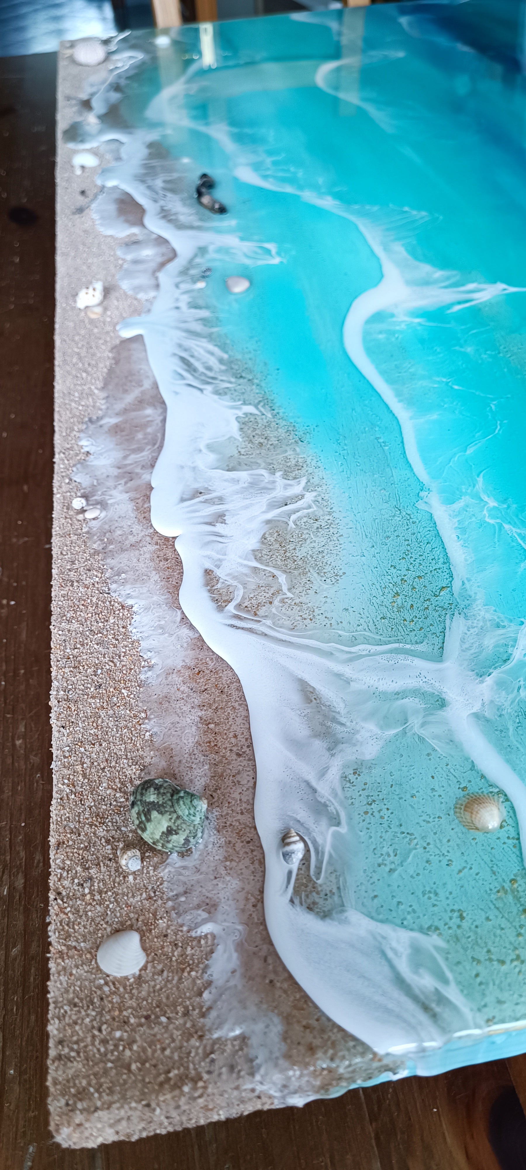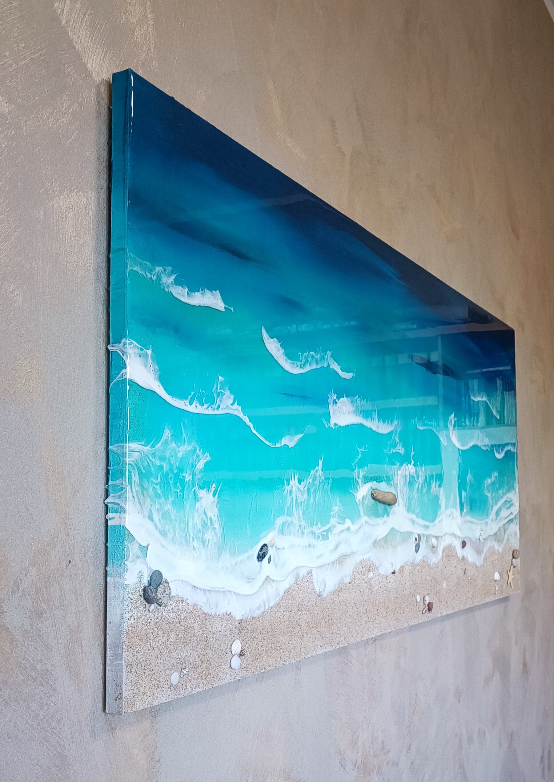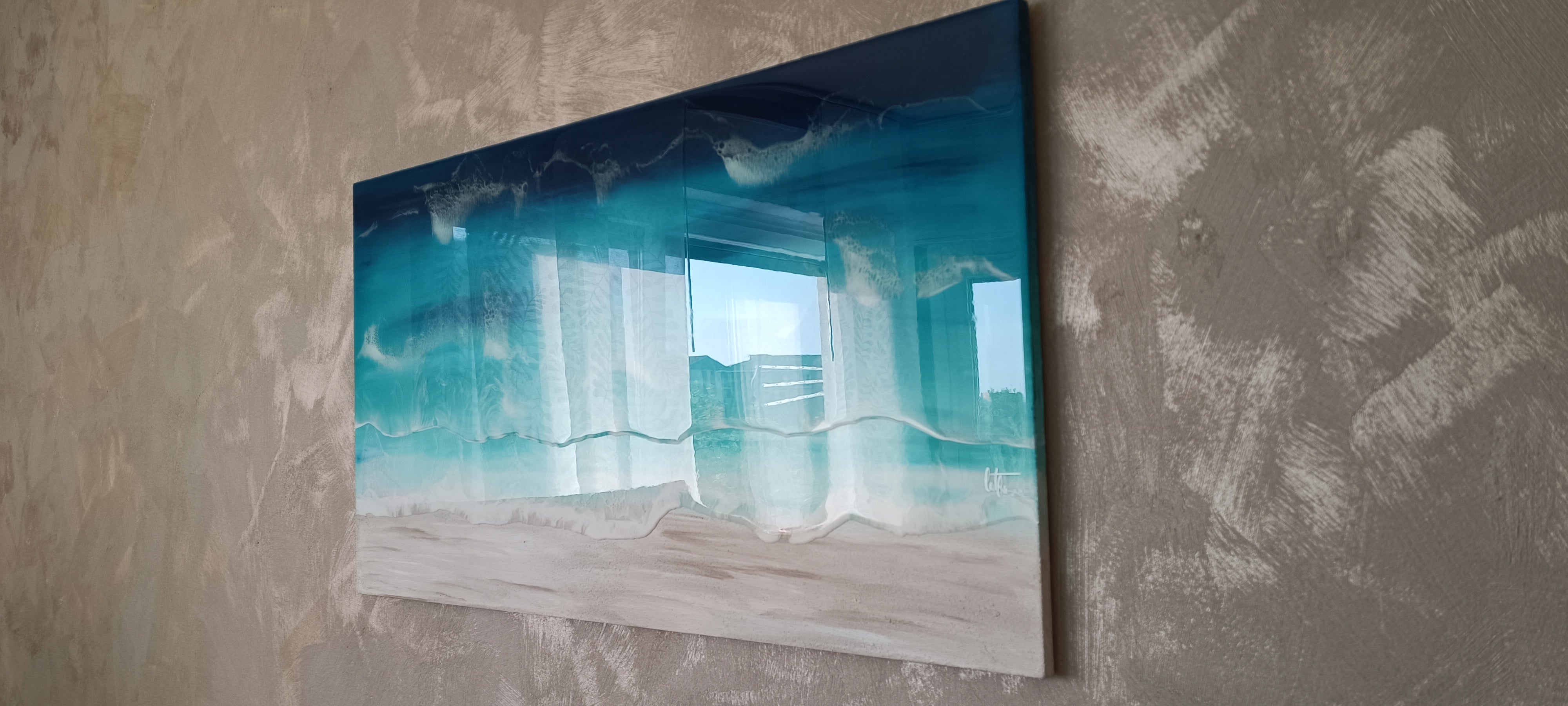 Quadri in Resin Art, spiaggia 3d , su pannello, varie misure. WAVES ART