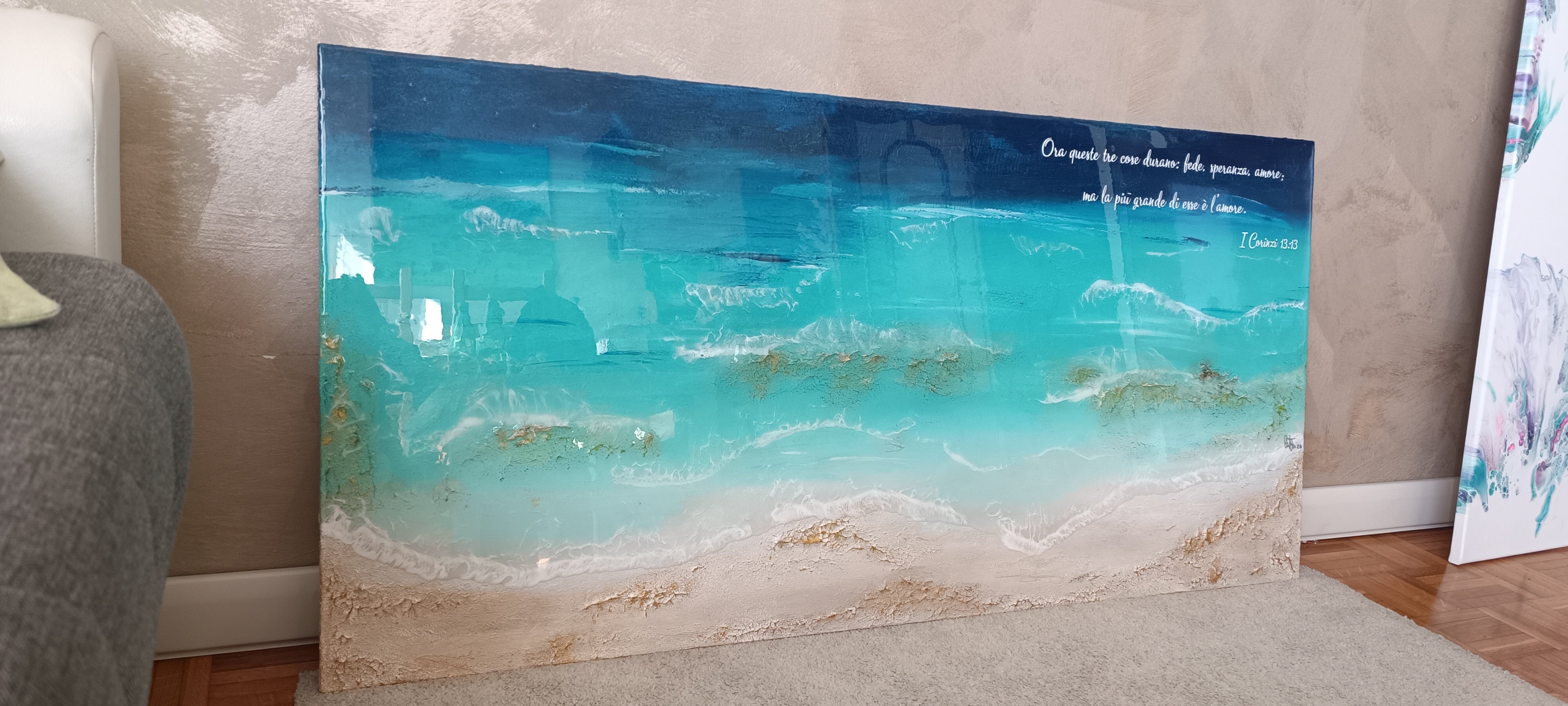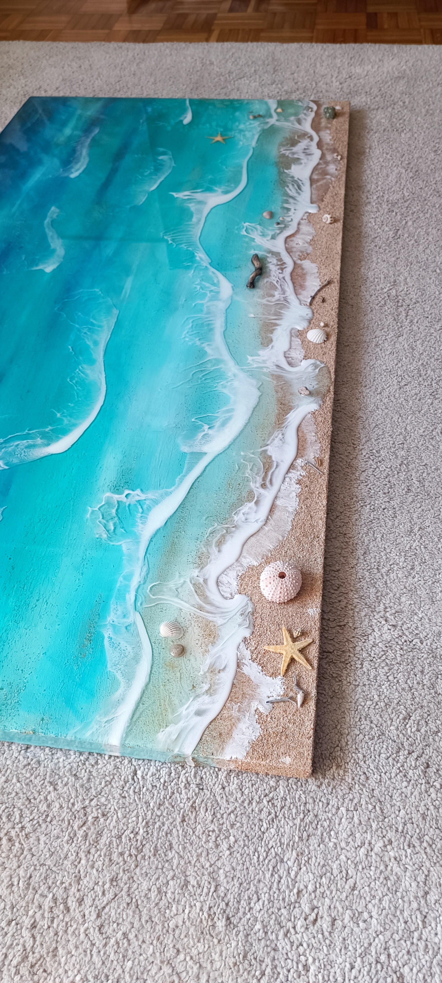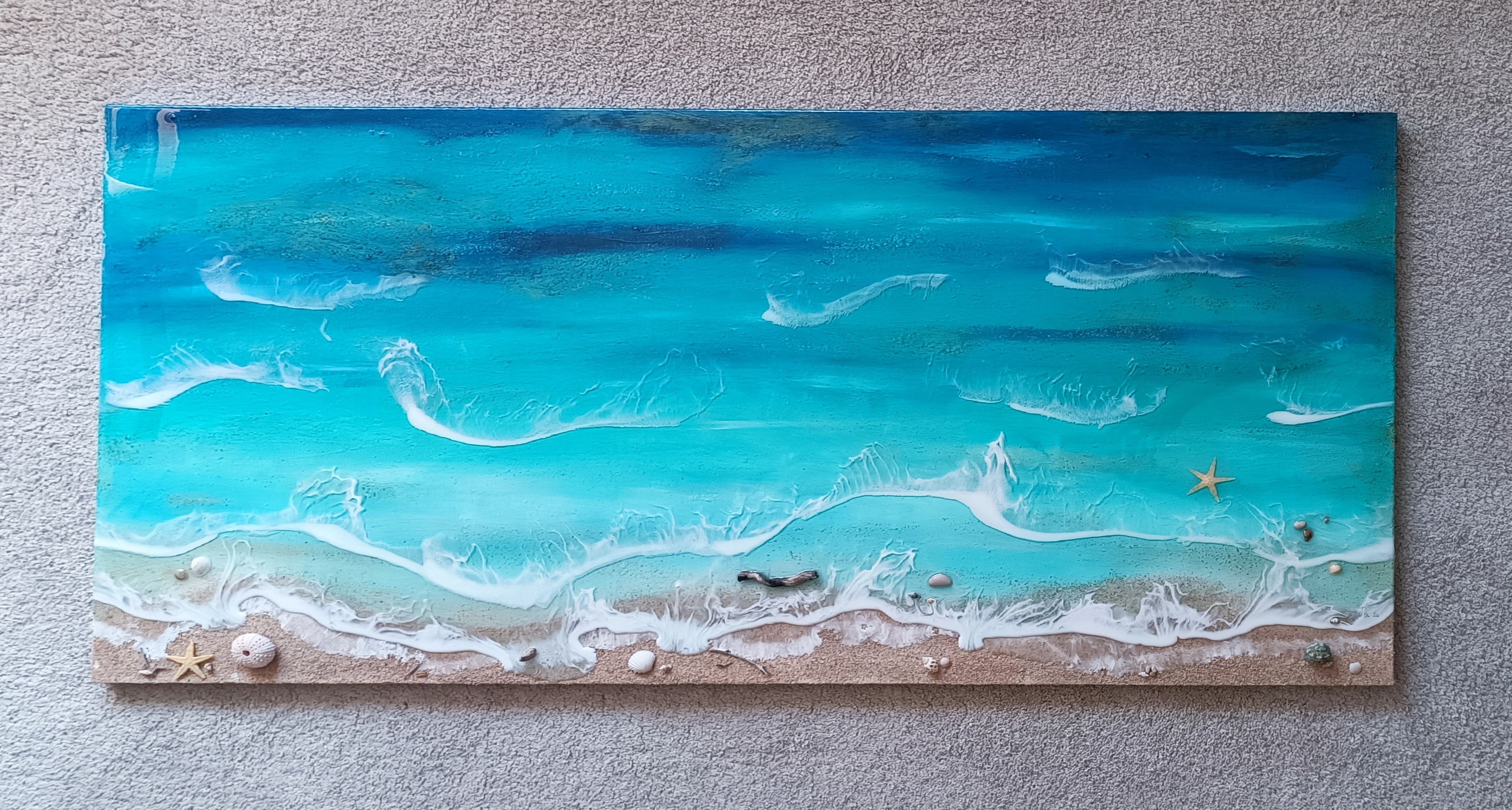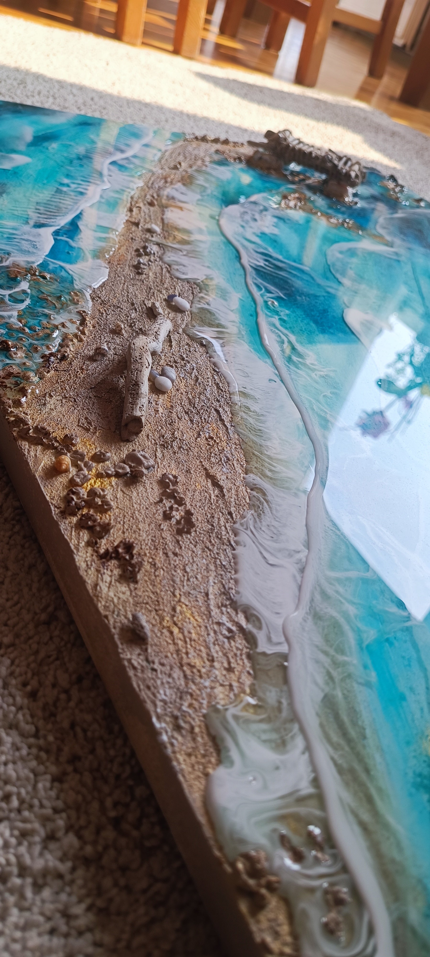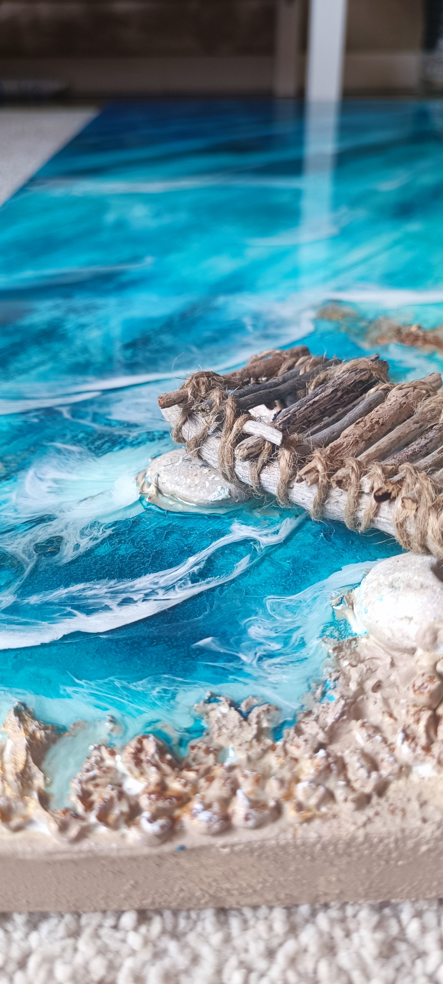 Quadri in Resin Art, spiaggia 3d , su pannello, varie misure. WAVES ART