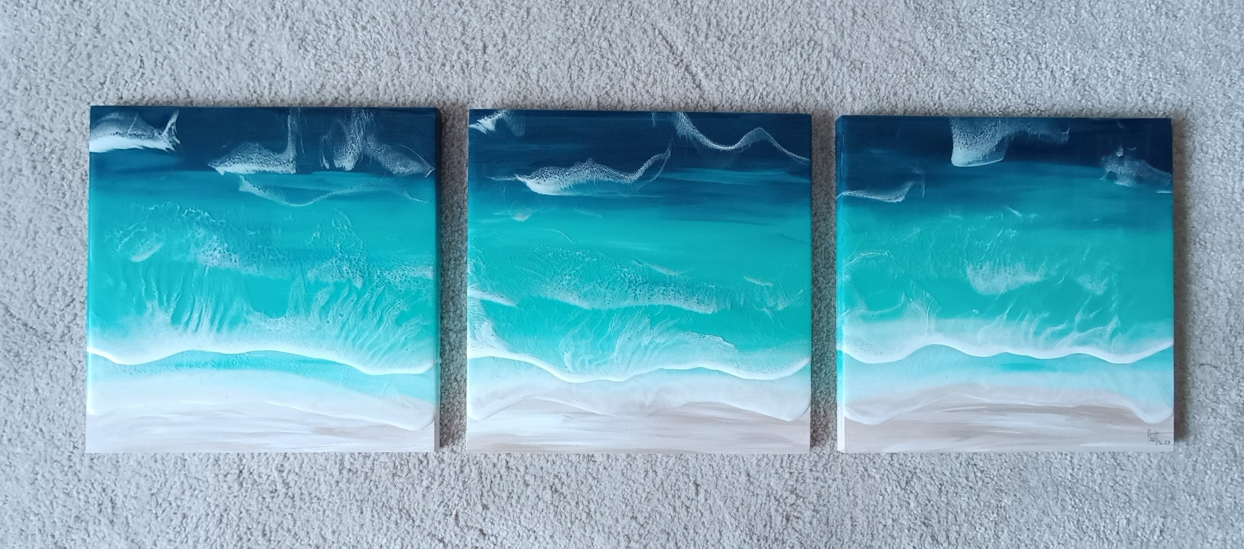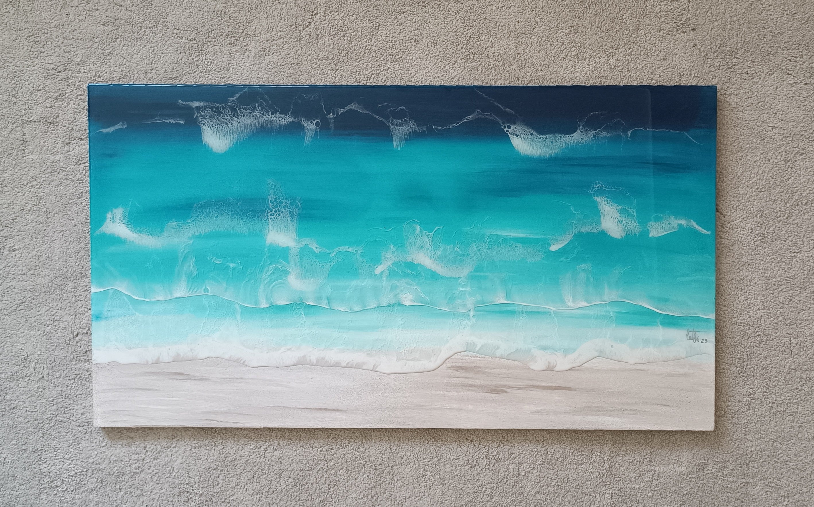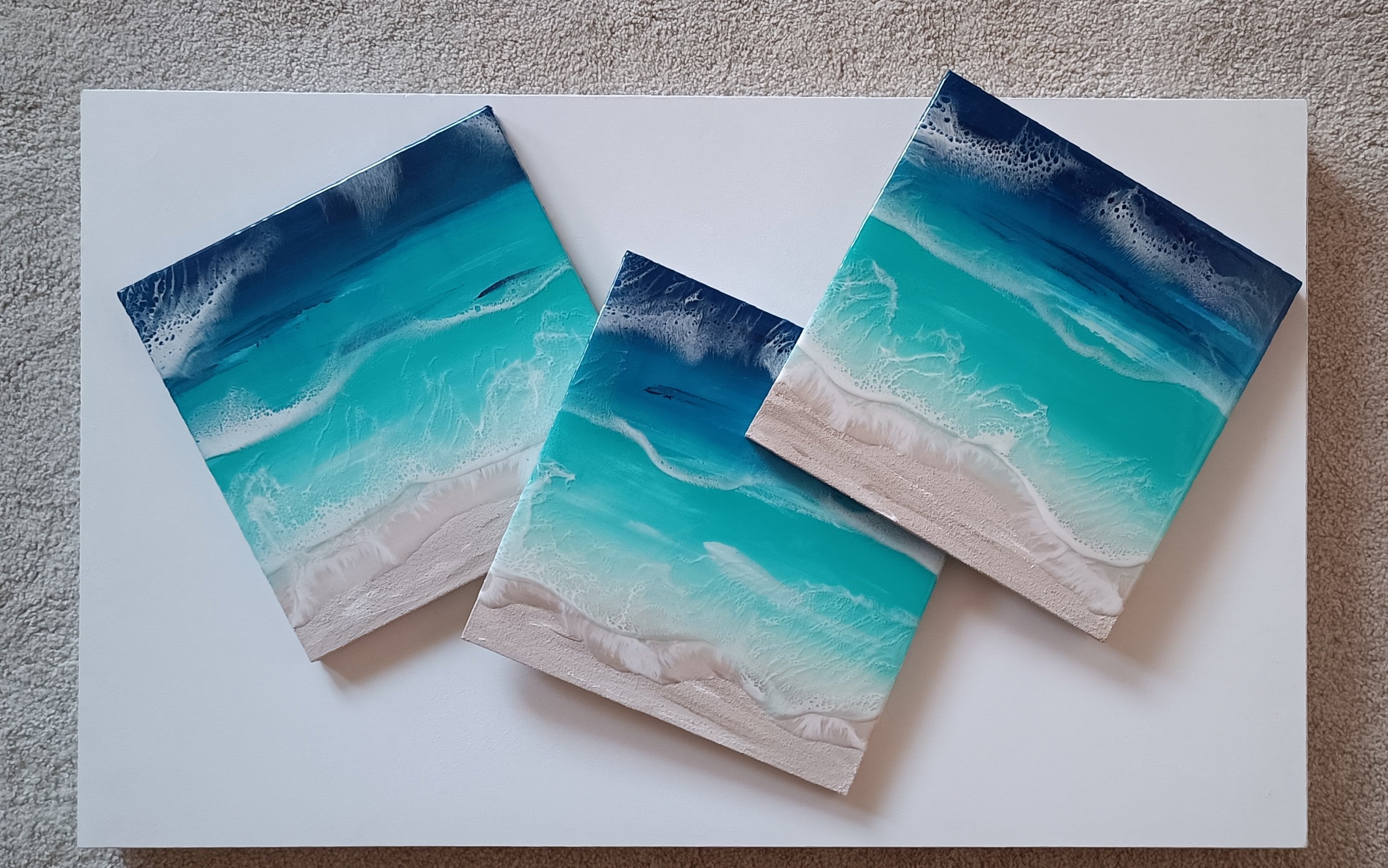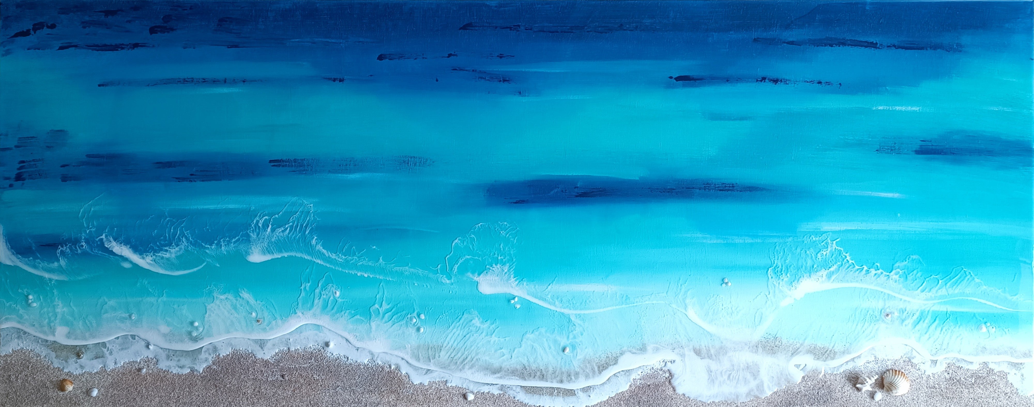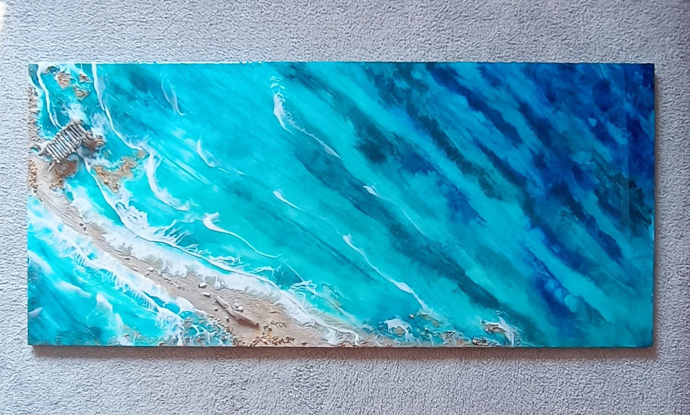 Quadri in Resin Art, spiaggia 3d , su pannello, varie misure. WAVES ART